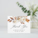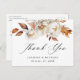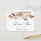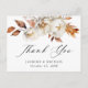 Rustic floral wedding thank you postcard featuring watercolor fall flowers and foliage in shades of ivory, cream, brown, and rust-orange. The elegant fall floral design is complimented by "thank you" displayed in a modern calligraphy script. Personalize the front of the wedding thank you postcard with your names and wedding date. The back of the postcard displays your return address and custom message. The autumn floral wedding thank you postcard is perfect for your fall wedding or special event. Designed to coordinate with our Rustic Autumn Floral wedding collection.