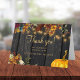 Rustic fall florals and string lights on dark brown barn wood elegant bridal shower folded thank you card with a trendy chic gold trendy script. +++++++++ Personalize with your text and signature! ++++++++++ Suitable for floral spring summer or autumn fall outdoor garden backyard rustic country or farmhouse barn themed bridal parties or weddings.