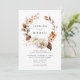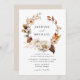 Embrace the beauty of the season with our Rustic Autumn Floral Wreath wedding invitation, where your love takes centre stage. This exquisite design showcases the couple's names artfully encircled by a wreath of watercolor flowers and foliage in captivating shades of ivory, cream, brown, and rust-orange. The elegant calligraphy script adds a touch of sophistication, setting the perfect tone for your special day. As the intricately crafted wreath frames your names, it weaves a story of rustic charm and natural beauty. Invite your loved ones to share in the warmth and romance of your celebration, where every element echoes the colours and allure of autumn. Elevate your wedding preparations with an invitation that seamlessly combines rustic elegance and graceful design, promising a cherished keepsake that captures the essence of your unique love story.