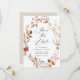 Elegant fall-themed save the date featuring watercolor autumn flowers and foliage in shades of red, olive green, orange, and brown. "Save the Date" is displayed in a modern calligraphy script with your names and wedding details shown below. The fall floral save the date coordinates with our Rustic Autumn Floral wedding collection.