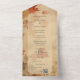 This exquisite design features a stunning background of rustic autumn leaves, carefully curated in muted fall colours. The soft, earthy tones evoke a sense of coziness and romance, setting the tone for your intimate autumn wedding. The All-in-One wedding invitations are both beautiful and practical by combining the wedding invitation with an easy to remove perforated RSVP postcard. They are also quick and easy to prepare for mailing. Simply address the invitation, fold the back flap and seal with the included clear stickers. Once your guests receive the pre-addressed invitation they simply tear off the perforated RSVP card and drop it in the mail. The addition of the QR code allows your guests to easily access your wedding website for information including reception details and dinner choices!