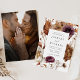 This rustic floral wedding invitation captures the essence of the romantic fall season with warm hues of marsala, purple, cream, ivory, brown, and rust-orange. The captivating design flawlessly blends the beauty of autumn flowers and delicate foliage, brought to life through the artistry of watercolors, creating a truly mesmerizing keepsake for your special day. The back of the fall wedding invitation displays your full-bleed, vertical engagement photo. This design coordinates with our Rustic Autumn Floral wedding collection.