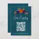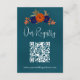 Rustic autumn floral wedding: Navy blue and terracotta burnt orange floral with fall foliage. Features teal blue and modern script typography
