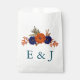 Rustic Autumn Orange Navy Blue Floral Wedding Favour Bag