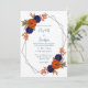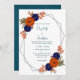 Rustic Autumn Orange Navy Blue Floral Wedding Invitation