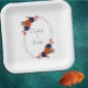 Rustic Autumn Orange Navy Blue Floral Wedding Paper Plate