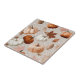 A cozy seamless pattern ceramic tile featuring pumpkins in shades of orange, cream, and muted grey, surrounded by autumn leaves. With a warm, earthy palette of burnt orange, soft creams, browns, and muted greens against a subtle background, this design captures the charm of the harvest season. Ideal for lovers of rustic fall aesthetics, farmhouse style, and seasonal autumn.
