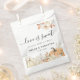 Add a charming seasonal touch to your celebration with this Rustic Autumn Pumpkins & Flowers Favour Bag. Designed with watercolor pumpkins, cream roses, cotton stems, and warm fall foliage, this bag is the perfect blend of rustic farmhouse elegance and autumn charm.