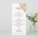 The romance of an Autumn wedding is captured in this elegant design featuring watercolor roses and greenery in warm Fall colours of terracotta, ivory, rust, chestnut, dusty blue and sage green with touches of gold sparkles. This design also features unique text graphics in a custom calligraphy script font with colour that can be customized in the design editor. Includes text fields for menu items.
