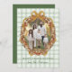 Send warm holiday wishes with this Rustic Autumn Wreath with Bow 4 Photo Thanksgiving Card. A watercolor wreath of autumn leaves accented with a golden orange bow frames your family photo on a soft green plaid background for a festive, rustic look. “Happy Thanksgiving” is displayed in elegant green lettering with your family name in handwritten script below. The back includes a coordinating three-photo collage with space for your personalized holiday message, creating a heartfelt way to share gratitude and joy with loved ones.