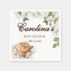 These "Baby is Brewing" rustic coffee-themed baby shower napkins feature a cozy design with a coffee cup at the bottom left corner and soft white flowers in shades of beige and brown at the top. The elegant yet rustic design perfectly matches a laid-back, coffee-inspired baby shower. The earthy tones and delicate floral accents make these napkins an ideal addition to your celebration, adding both charm and practicality to the event.