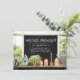 Announce your new home address to friends, family and associates with this charming rustic moving announcement flat card. It features a chalkboard with custom text that you can personalize with your new home address. The chalkboard sits above a potting shelf with houseplants, a birdhouse and clay pots along with a plant watering can. The look is rustic farmhouse style with a gardening theme. There is also a text template on the back of the card for personalizing with your desired message.