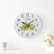 Add a family name or other text to personalize this white grey wooden fence panel (print only not real wood) look kitchen clock. Ideal for a rustic barn, country, farm house style home or kitchen. Gift to mother, grandma, father, grandpa, grandparents, parents for their anniversary, birthday, Christmas or retirement. Plenty of space to add additional custom commemorative text as desired. Graphic of watercolor Sunflowers.