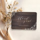Rustic wildflower floral design with trendy thank you script on dark brown barn wood background, simple and elegant, great thank you card for fall backyard country wedding, winter rustic wedding, vintage boho wedding, or outdoor botanical garden wedding.
