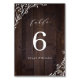Rustic wildflower floral design on dark brown barn wood background, simple and elegant, great table number cards for fall backyard country wedding, winter rustic wedding, vintage boho wedding, or outdoor botanical garden wedding.