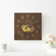 Rustic Barn Wood Farmhouse Hat Sunflowers Square Wall Clock