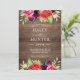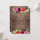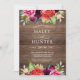 This charming rustic wedding invitation has a rich barn wood background with colourful floral accents framing the text. The colours are rich and lovely with russet salmon, deep pink and burgundy roses and mixed wildflowers and greenery. The look is simply perfect for a barn or rural estate or ranch wedding, a rustic boho style wedding, or a country western themed wedding. Personalize the text with your details.