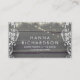 Enchanted string lights, rustic barn wood and white vintage lace business cards