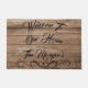 Whether you live on a rural farm or in the suburbs, every front entrance needs a welcome mat. Make your visitors feel a little at home as they walk to the door and prepare to knock. Rustic barn wood photo pattern as background. Welcome to our home with customizable family name as wording. Perfect as a house warming gift or make this your guests first indication to step in, kick off their shoes, and prepare for a fun evening of entertainment.