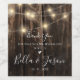 Rustic Barn Wood String Lights Wedding Favor Wine Label . The design has faux wooden background with string lights. A perfect wedding favor for the guests . This rustic wine label can be customized by changing the names of the bride and groom and wedding date. The design has space to add a personalized thank you message. Perfect for a country wedding .