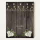 Cherish your wedding with this old, dark barn wood background, hanging string lights above, and antique white floral bouquet corners at bottom left and right on front and back. To Customize anything, use the personalize button, and if you wish to click the Customize further link. I'd also be honoured to help if you want more customization not found here. Send me a message.