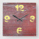 Rustic Barnyard Red Painted Wood. Square Wall Clock