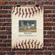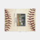 Rustic, baseball themed design with a photo template, optional title, name and jersey number. Baseball red lace on rustic white background.