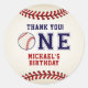 Rustic Baseball thank you stickers. Put me in coach! This napkin is created with a vintage background texture, baseball stitch accents with "One" in the centre, the "O" is replaced with a baseball. Additional party supplies are available at Metro-Events Zazzle shop and Metro-Event.com.