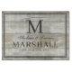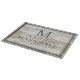 Rustic light brown driftwood graphic bbq cutting board with the couples first names, last name monogram, full last name, and wedding date available in customizable templates. A cute farmhouse barbecue themed gift to help celebrate a summer wedding cookout.