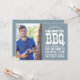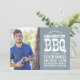 Cool rustic graduation barbecue party invitation with distressed vintage typography. Use the design tools to choose any background colour to coordinate with your school colours or party theme. Add your senior photo and graduation party details on the front. Use the design tools to add more photos and text, edit fonts and colours to create a unique graduation announcement and party invitation.
