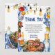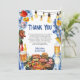 Wrap up your Baby-Q celebration with this mouthwatering thank you card featuring watercolor grill fare, picnic table accents, and string lights. Perfect for expressing heartfelt appreciation to guests who shared in the laughter, food, and joy. The cozy gingham background and BBQ-themed illustrations tie it all together for a warm, memorable note of gratitude.