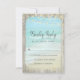 Include these RSVP cards in your Rustic Beach Wood Wedding Invitation Suite. A beach scene with aqua blue waves crashing against the shore with white spray, is framed with rustic weathered wood, and string lights decorate the top.