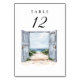Portes de grange rustique aquarelle qui s'ouvrent sur une scène de plage numéros de table mariage parfait pour les mariages nautiques ou balnéaires et événements.