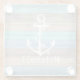 Rustic Beach Wood Nautical Stripes & Anchor Glass Coaster