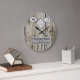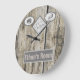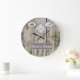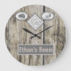 Rustic Cabin | Bear and Elk Monogram Boy's Room Large Clock. Decorate your son's room with this warm woodsy collection. Faux wood plank background.