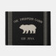 Welcome guests to your abode with this charming rustic farmhouse style doormat that's perfect for your cabin or country house. Personalized design features your family name in neutral tan lettering, along with your year established and a bear illustration. Rope stripe detailing on a rich black background completes the design.