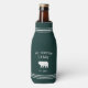 Perfect for your cabin or vacation home, these cool personalized bottle coolers feature your family name or house nickname on a hunter green background, with your year established and a bear illustration. Rope stripe detailing at the top and bottom completes the design for a rustic farmhouse style look.