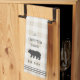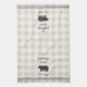 Customize your kitchen with this cute personalized towel featuring your family name or house name and year established in rich charcoal grey lettering accented with a bear illustration on a tonal plaid background.