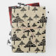 Rustic Beige Black Red Christmas Tree Pattern Wrapping Paper Sheet