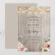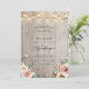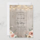A rustic charm unfolds with a weathered wood backdrop adorned by delicate string lights. Soft, blush-toned florals and greenery frame this design, evoking a warm and inviting atmosphere perfect for a romantic celebration. This design brings a touch of natural elegance to your special day.