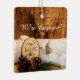 Commemorate the day he proposed and you said yes and celebrate your first Christmas as a newly engaged couple with the charming Rustic Birch Tree and Barn Wood Engagement Ornament. This casual yet classy custom woods or forest theme engagement Christmas ornament features a quaint nature photograph of a white birch tree branch, wood slice with the words LOVE burned on it, two brown pine cones, green pine tree branch and white bridal veil with a rustic and weathered brown barn wood background.