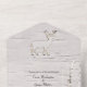 Rustic wedding tri-fold all in one invitation done in a ivory birch bark looking background, with graphics of a semi transparent stag, at the top and birch trees, on the right side. Personalize all the text on each side to suit your wedding needs.