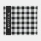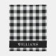 This classic black and white buffalo check pattern blanket has a black strip on the bottom with a family name in white text. Personalize with your own name or to give as a gift.