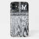 This phone case features a black and white photo of distressed wood and windows along with customizable initial and message.