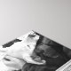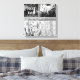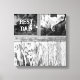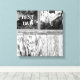 This canvas features a black and white photo of a rustic scene along with Olive, a beautiful Labrador mix with her dad. Message and photo are customizable.