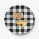 Rustic Black and White Plaid with Fall Pumpkins Paper Plate