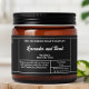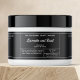 A label for soap or cosmetics products with a black background and black text. Features space for your company name, ingredients, business information, and more. This label measures 8.25 inches by 1.75 inches (209 mm by 44 mm) and is suitable for jars with a diameter of 2.6 inches (66 mm) or more and a label height area of at least 2 inches (50mm). Most 8 oz (240 ml) and 16 oz (480 ml) jars fit this description, but check the jar specifications to be sure. This label makes a great choice for packaging beauty products that require larger labels like sugar scrubs, body butters, and thick lotions and creams.