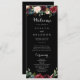 Ce programme de mariage botanique noir rustique est parfait pour un mariage classique. Le design est composé de fleurs bordeaux, rouges, navy, bleues et rousses rayonnantes et gracieuses peintes à la main dans un arrière - plan noir, inspirant beauté naturelle.