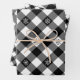 Rustic Black Buffalo Plaid Snowflake Monogram Wrapping Paper Sheet