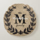 Rustic Black Etched Fleur-de-Lis Laurels Round Pillow
